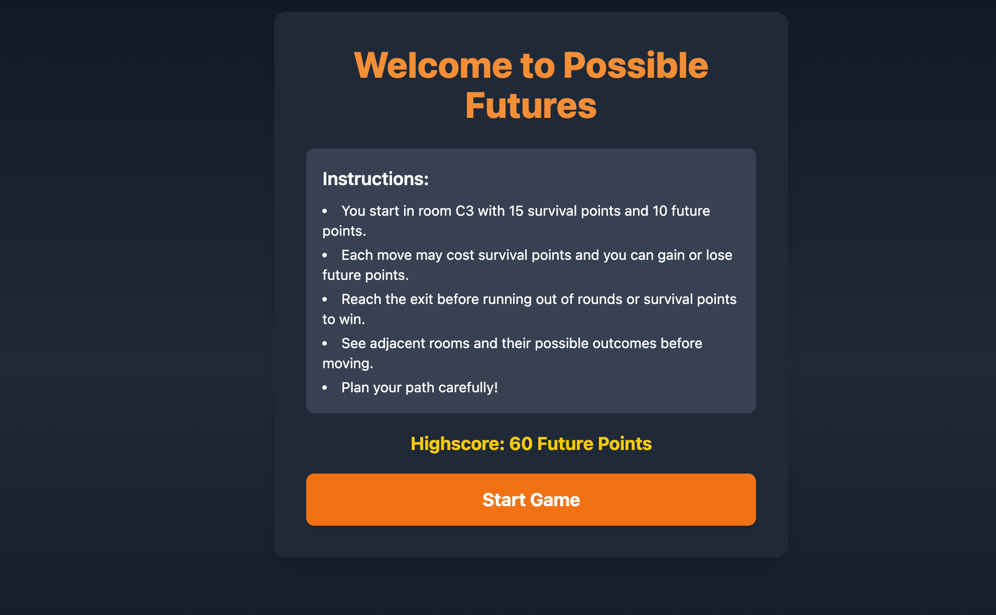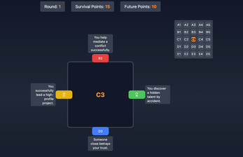 In this narrative-driven strategy game, you navigate a grid of rooms — each exit holds a possible life event, from career breakthroughs to painful setbacks. Choose your path wisely: doors reveal random futures with positive or negative values that shape your destiny.